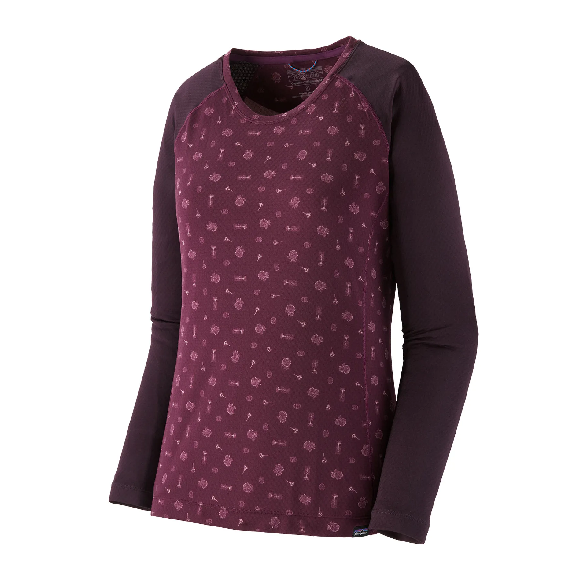 Patagonia Capilene Midweight Womens Crew in Fire Floral: Night Plum