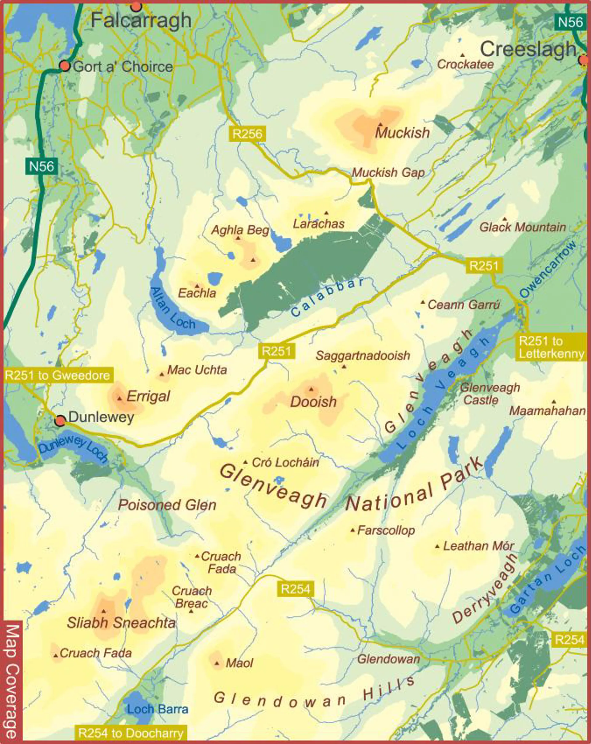 Definitive detailed map at 1:25,000 scale covering the Derryveagh Hills, Glenveagh National Park, Errigal & Muckish.