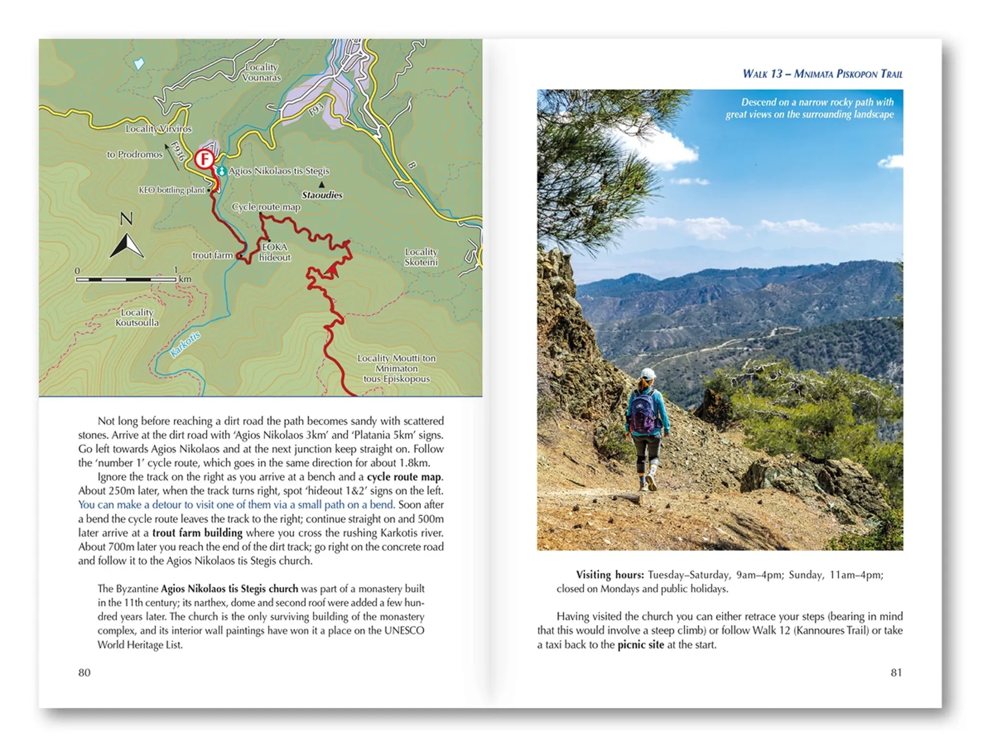Graded from ‘1’ (easy and or short; waymarked) to ‘3’ (long and or difficut terrain; challenging route-finding), the walks range from 3 to 20km (2–12 miles) and take anywhere from 1–7 hours to complete. Routes take in the west, central Cyprus, plus the south and the east – showcasing some of the best scenery and trails the island has to offer.