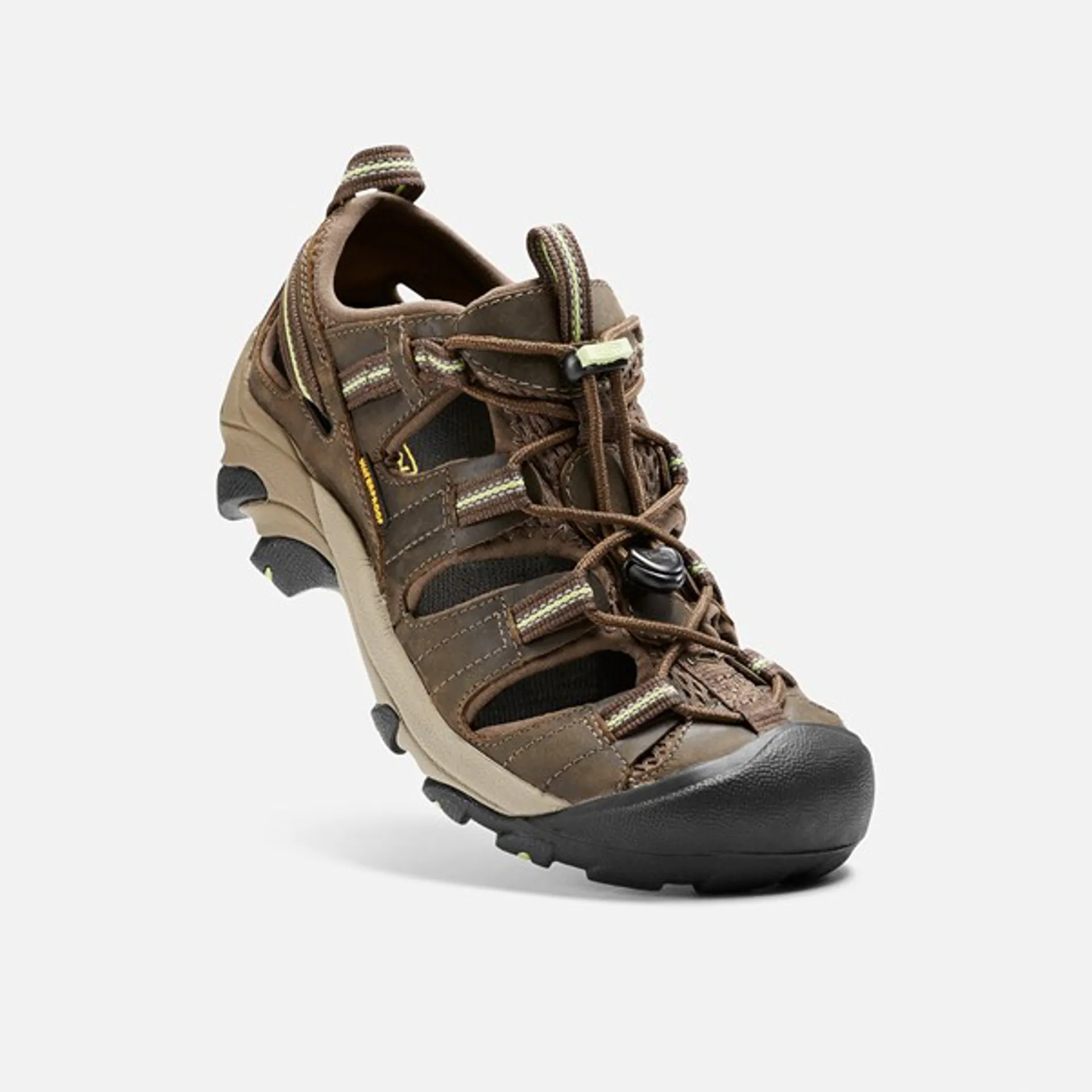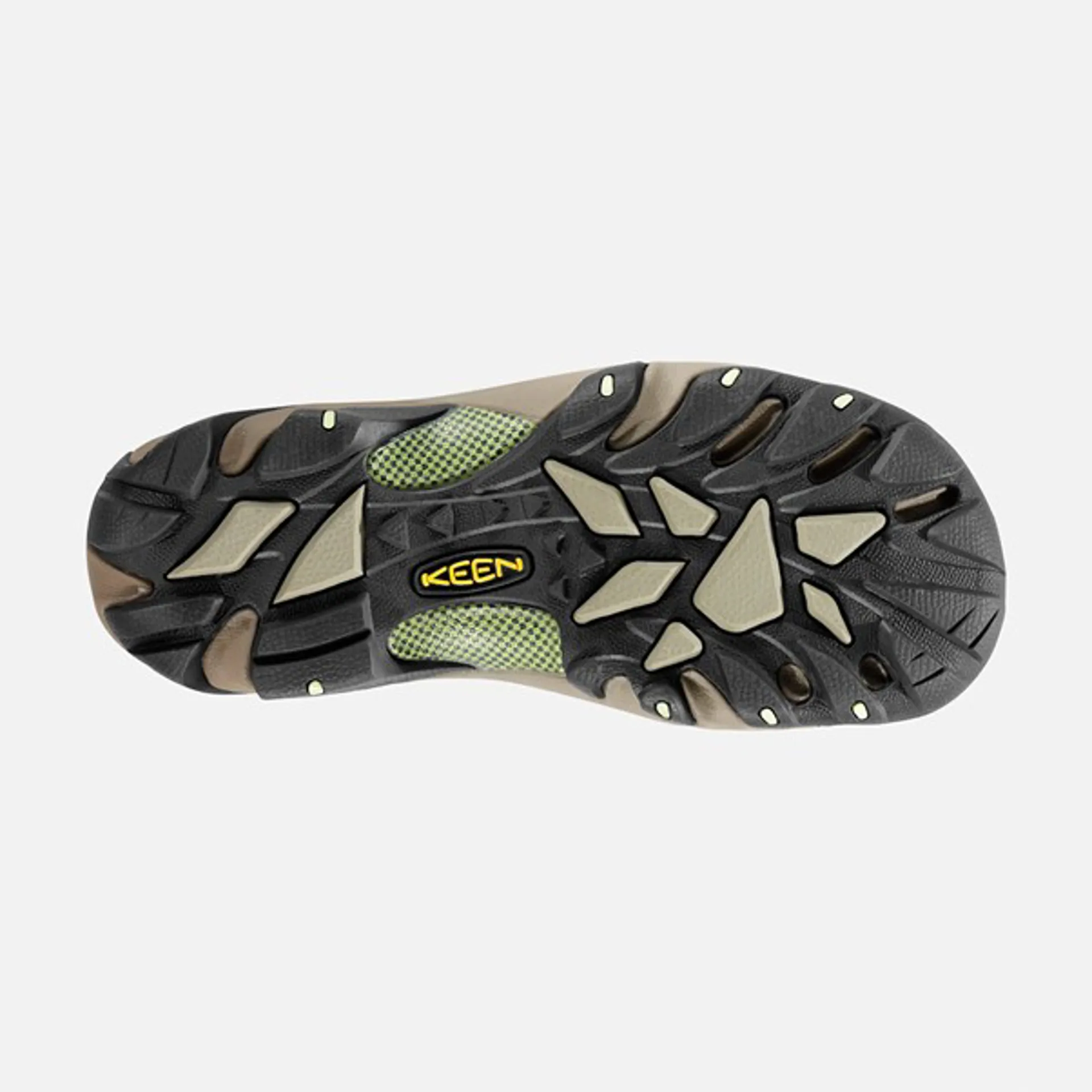 All the best features of a hiking shoe and a sandal in one comfortable style. Open vents in the waterproof leather provide breathability, and the multi-directional lug outsole bites into tough terrain.