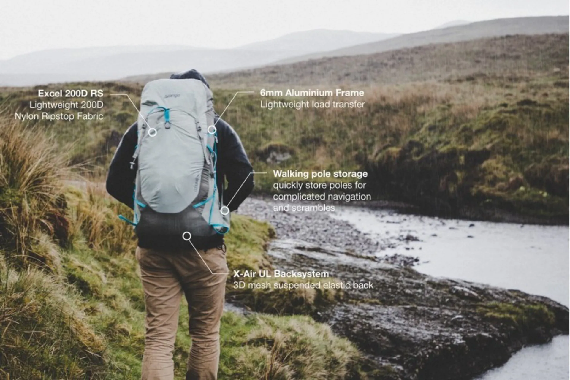 • X-Air Back System - Lightweight wire-frame supports a mesh back holding the pack away from the users body for enhanced ventilation